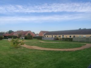 Områdets elementer bindes sammen af klippede stier, som giver adgang til opholdsplads, aktivitetsbane og de grønne zoner, samtidig med at størstedelen af græsarealet fortsat kan udvikle sig vildt.